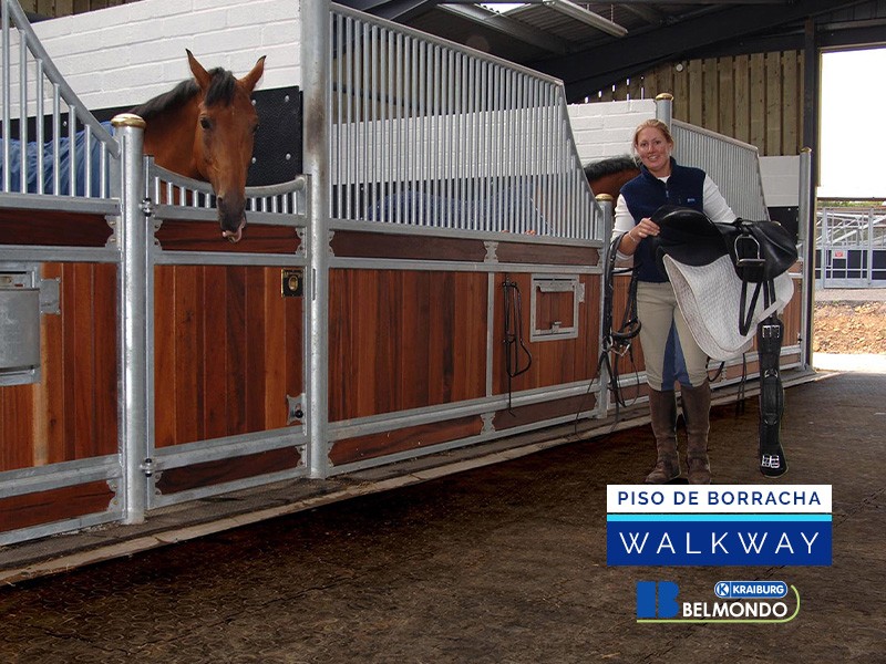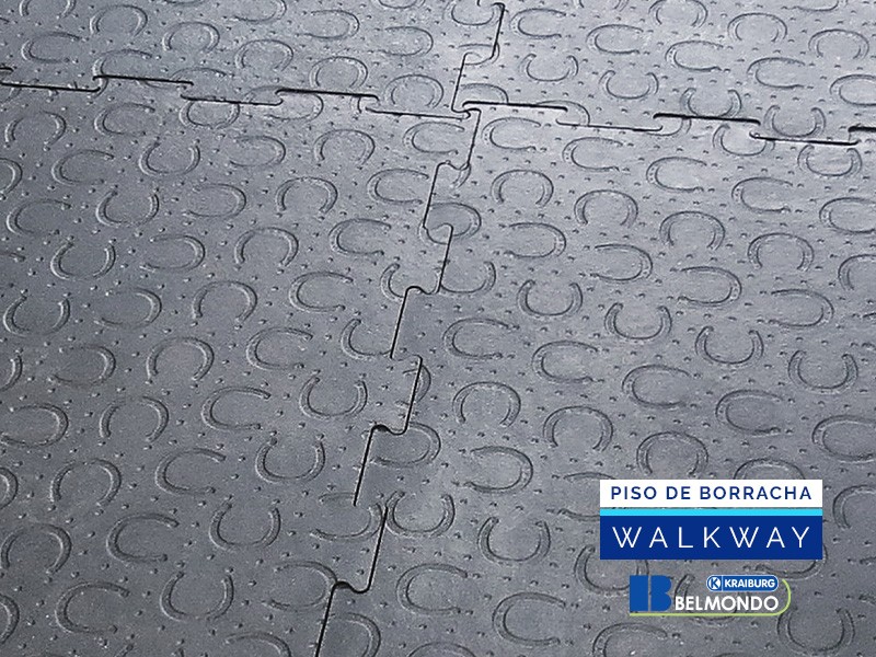O Piso de Borracha para Equinos Belmondo Walkway é o piso Ideal para aplicação em trailers (veículos de reboque), bem como áreas de circulação de equinos. Walkway absorve os impactos dos cascos, proporcionando menor incidência de ruído no interior dos estábulos.