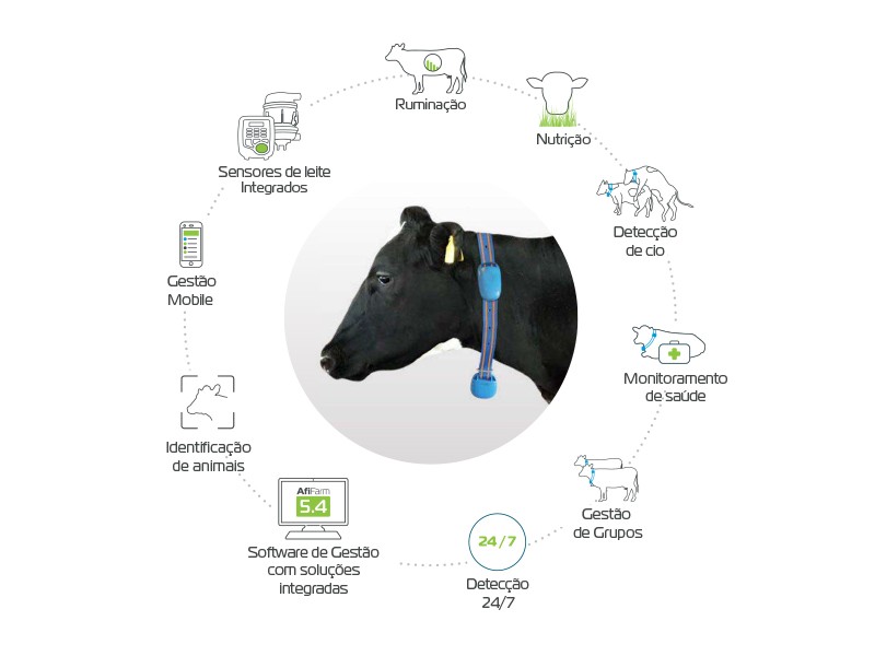O Colar para Vacas - AfiCollar funciona com o avançado software de gerenciamento de rebanho Afimilk - AfiFarm 5.4, para fornecer informações precisas e oportunas.